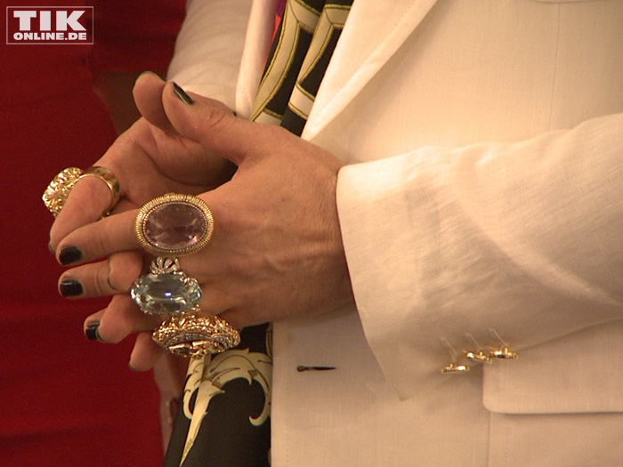 Harald Glööckler trug zur seiner Vernissage-Eröffnung, wie immer, lauter Glitzer-Ringe.