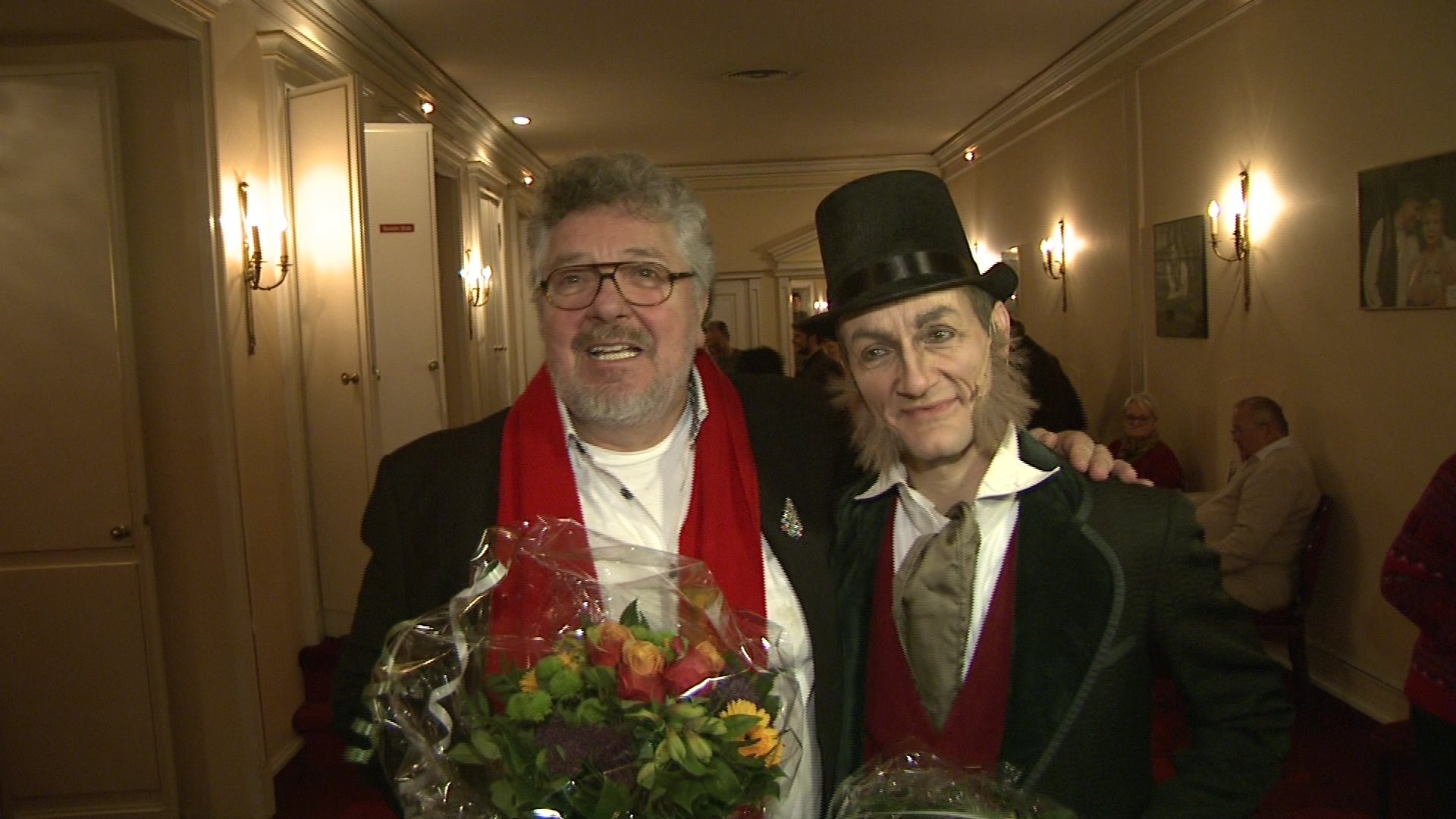 Michael Schanze mit Ebenezer Scrooge bei der Premiere des Musicals „Eine Weihnachtsgeschichte“ in Berlin