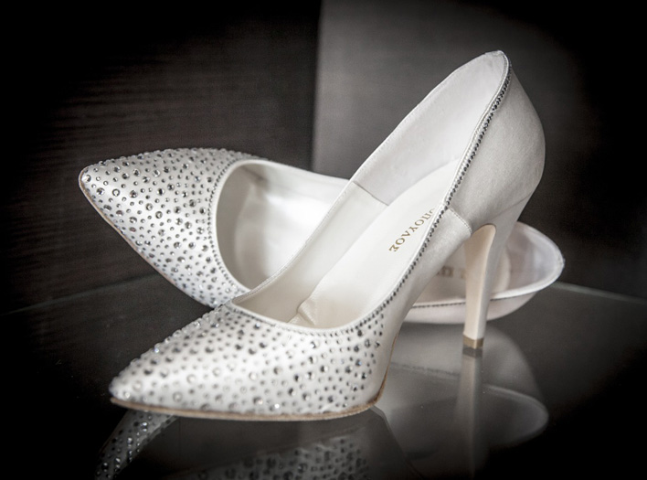 Weiße High-Heels mit Glitzer-Applikationen wären bei Mariah Carey’s Hochzeit eine Option