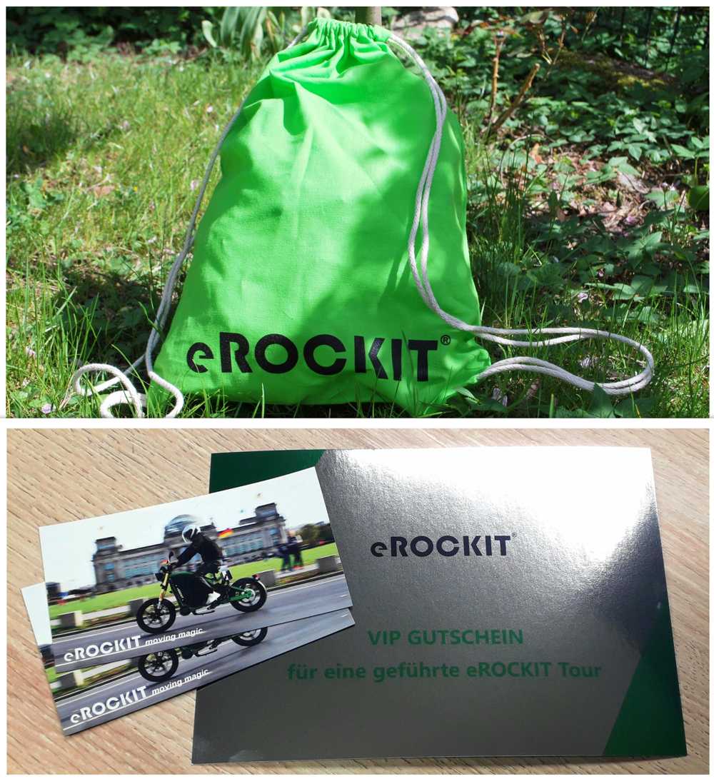 Unter anderem gibt es 5 eROCKIT Goodies-Bags für Euch, die u.a. stylische Kühlschrankmagneten und einen Gutschein für eine Tour mit diesem besonderen Elektromotorrad enthalten.