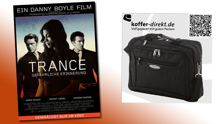Zum Kinostart von „Trance – Gefährliche Erinnerung“ verlost TIKonline.de zwei Fan-Pakete bestehend aus je zwei Kino-Tickets und einer ProBusiness Aktentasche von koffer-direkt.de. Die Tasche aus strapazierfähigem Nylon besitzt ein Laptop-Fach, eine große Innentasche mit Unterteilungen, mehrere Außentaschen und Platz für Organizer. Sie ist sowohl bequem in der Hand als auch über der Schulter tragbar.