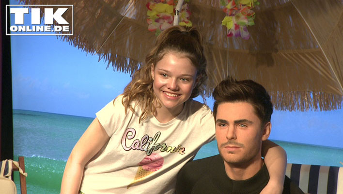 Presserummel bei Madame Tussauds in der Hauptstadt!. Hollywood-Star Zac Efron sitzt lässig in einem Sonnenstuhl inmitten der Kulisse von Malibu Beach. Die Wachsfigur sieht dem Schauspieler täuschend ähnlich, trägt Surfanzug, Rettungsboje und lächelt verträumt. Zur Begrüßung gab es einen Cheerleader Dance von Teenie-Star Faye Montana. Und noch ein besonderer Fan von Zac Efron erschienen am Set. Sängerin Joelina Drews berührte das wächserne Double von Zac Efron zärtlich, schmachtete es an und warf ihm einen Kuss zu.