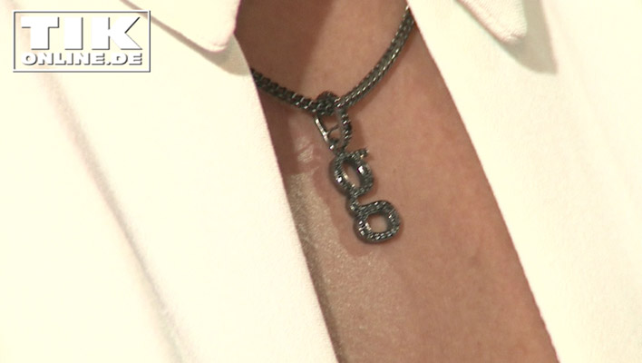 Sophia Thomalla erschien nach den Liebe-Schlagzeilen der letzten Tage in einem weißen Kostüm und zeigte viel Dekolletee. In ihrem Nacken blitzte ihr bekanntes „Till“-Tattoo. Um den Hals trug sie eine Kette mit einem „G“. Erst vor wenigen Tagen wurden Fotos veröffentlicht, die sie mit Rocker Gavin Rossdale zeigten. Was das „G“ zu bedeuten hat? Sophia spielte es im Interview herunter und meinte: „Ich trage 1000 Ketten, immer schon, immer. Und ganz viele Ringe auch immer.“