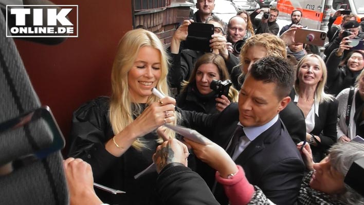 Die Galerie zeigt in einer Ausstellung die schönsten Momente aus dem Leben von Claudia Schiffer. Freudestrahlend posierte die ehemalige Muse von Karl Lagerfeld neben den Bildern, die sie teilweise auch etwas nackt zeigen. Dann nahm sich Claudia Zeit für ihre Fans, signierte Bücher, posierte für Selfies und plauderte mit ihren Anhängern. Claudia Schiffer wird in Berlin für 30 Jahre außergewöhnliche Verdienste in der Mode-