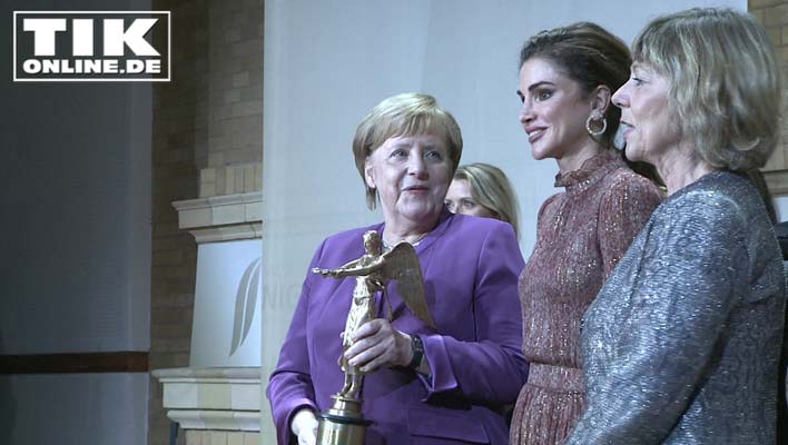 Viel Prominenz auf der VDZ Publishers‘ Night in Berlin! Ihre Majestät Königin Rania Al Abdullah von Jordanien überreichte am Abend in Berlin die Goldene Ehren-Victoria an Kanzlerin Angela Merkel. Nur eine Woche nach der Verkündung ihres Rückzugs aus der Parteispitze der CDU erschien die Kanzlerin bestens gelaunt bei der Gala-Veranstaltung des Verbandes der Deutschen Zeitschriftenverleger. Neben hochkarätigen Gästen aus Wirtschaft und Verlegerwelt wohnten auch VIPs wie Iris Berben, Alexandra Kamp, Rainer Brüderle, Star-Tenor Tobey Wilson, Manuel Cortez, Sarah Knappik oder Prof. Dr. Jo Groebel der Preisverleihung bei.