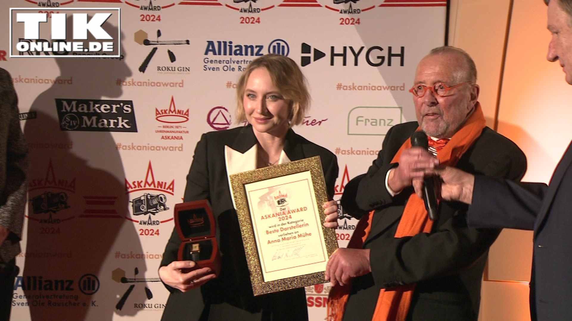Hochkarätige Preisverleihung im Hilton Hotel Berlin. Wie jedes Jahr kurz zum Beginn der Berlinale werden beim Askania Award besondere Menschen geehrt. Anna Maria Mühe und Ulrich Tukur wurden als beste Schauspieler ausgezeichnet. Schauspielerin Brigitte Grothum bekam den Award für ihr Lebenswerk. Box-Legende Ulli Wegner erhielt den Sonderpreis in der Kategorie Sport und als Shooting Star wurde Schauspieler Alessandro Schuster geehrt.