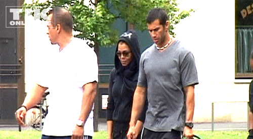 In Sportklamotten mit Jogginghose, Turnschuhen, Kapuzenpulli und Schal spaziert Janet Jackson mit zwei Bodyguards und Begleitung durch den Tiergarten. Die Pop-Queen scheint Sport zu machen – oder es zumindest zu versuchen.