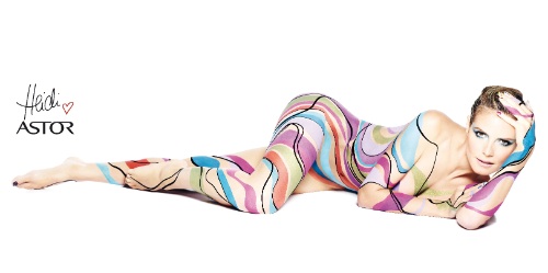 Für den Make-up-Spezialisten „Astor“ hat die „GNTM“-Chefin die Hüllen fallen lassen und sich nur mit einem Body Painting ablichten lassen. Beworben werden sollen mit den Bildern die „Eye Artist Shadow Palette“ und „Khôl Kajal & Contours“, entsprechend farbenfroh ist das Painting.