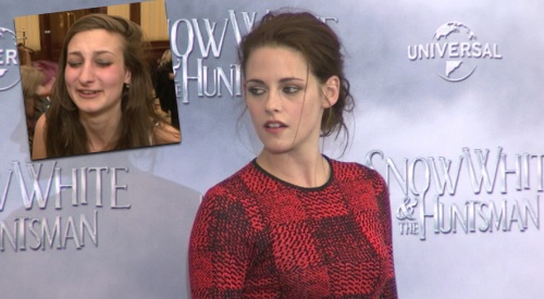 Ein weiblicher Fan brach vor der TIKonline.de-Kamera weinend zusammen! Wir fragten nach, warum es Tränen gab. Sie erzählte uns, sie sei so ein großer Fan von Kristen Stewart und versicherte, es seien reine Freudentränen.