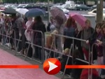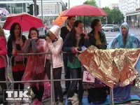 Bewaffnet mit Schirmen hatten die zumeist weiblichen Fans vor dem Kino International campiert und ausgeharrt um ein Autogramm oder ein Foto von ihrem Idol zu ergattern.
