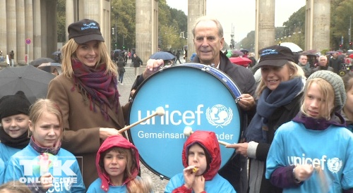 Zum morgigen ersten Internationalen Weltmädchentag trommelte TV-Lady Sabine Christiansen zusammen mit Topmodel Eva Padberg und zahlreichen Berliner Mädchen lautstark auf eine große Pauke.