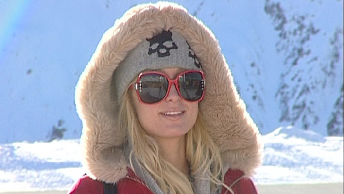 Gegen 17.00 Uhr: Überraschung! Paris Hilton taucht wieder auf. Damit rechnete nun kaum einer! Paris schnallt sich ein Paar Ski unter die Füße und nimmt die Abfahrt ins Tal. Etwas ungelenk braust sie davon.