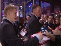 Wir sahen die Ehrengäste beim Eintreffen zur geheimen Party der Bayern. Unter den Gästen: Edmund Stoiber mit Gattin, Oliver Bierhoff und Wladimir Klitschko. Franz Beckenbauer kam natürlich mit Ehefrau Heidi. Der Kaiser sprach zu uns: „Ich glaube, dass die Stimmung gut ist. Das nächste Ziel ist jetzt, sich auf den UEFA-Pokal vorzubereiten und die Deutsche Meisterschaft dann in die trockenen Tücher zu bringen.“