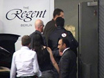 Vom Flughafen aus ging es direkt zum Hotel. Dort ließ sich die Sängerin in die Tiefgarage fahren und wir sahen sie zwischen all ihrer Gefolgschaft ins Hotel huschen.