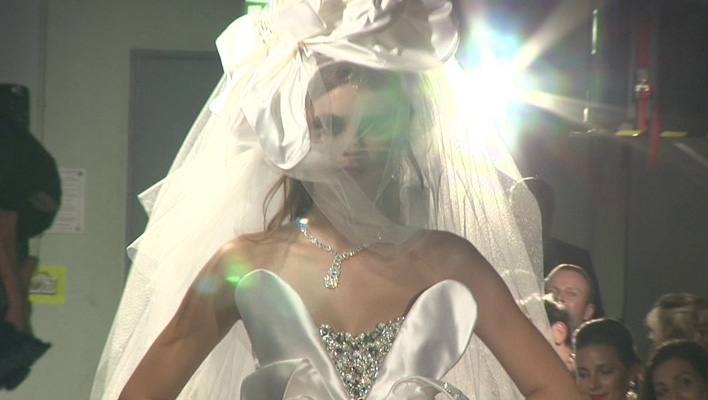 Das Highlight bildete GNTM-Gewinnerin Stefanie Giesinger in einem spektakulären Hochzeitskleid. Schauspielerin Caroline Beil sah es jedoch etwas anders. Sie sagte uns: „Es hat ein bisschen diesen Moorleichen-Look gehabt und die Frauen sahen so ein bisschen aus, wie aus dem See gezogen. Aber das hat hier rein gepasst.“