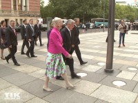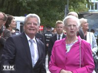 Mit fliederfarbenem Blazer und Blumenkleid kam Königin Margrethe gestern Abend am Martin-Gropius-Bau an und ließ sich von Joachim Gauck erst einmal erklären, wo früher einmal die Berliner Mauer stand.