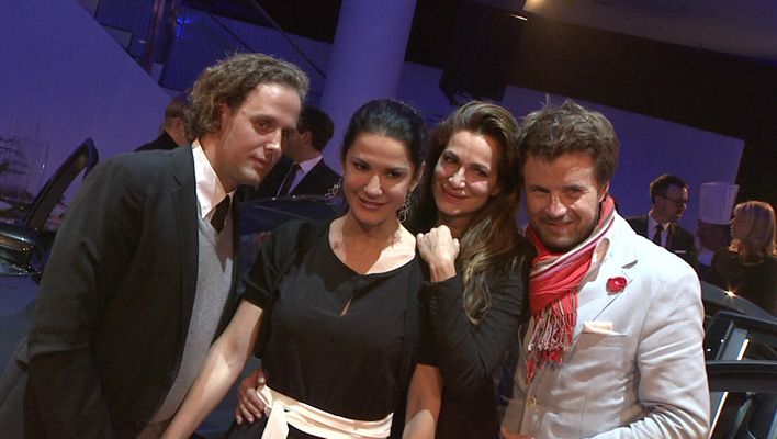 Munter posierte Schauspielerin Katja Riemann, hatte dann aber gar keine Lust auf Interviews. Viel gesprächiger der musikalische Gast des Abends. US-Shootingstar Cris Cap heizte den Gästen mit einem Mini-Konzert an der Gitarre ein. Der Sänger, der gerade mit Pharell Williams an einem neuen Album arbeitet, liebt auch schnelle Autos.