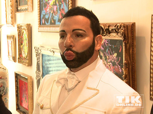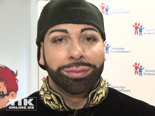 Harald Glööckler versteckt seine kahlen Stellen auf dem Kopf mit einer Kappe