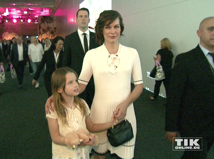 Nach den großen Finale der bunten Fashion-Show sahen wir die beiden Hollywood-Ladies mit ihren Töchtern, Bodyguards und viel Blitzlicht. Milla sagte uns, wie ihr die Mode gefallen hat: „Wunderschön. Tolle Farben. Sommer, Sommer, Sommer!“ Ein paar Autogramme noch für die Fans, dann ging es mit der Limousine davon …
