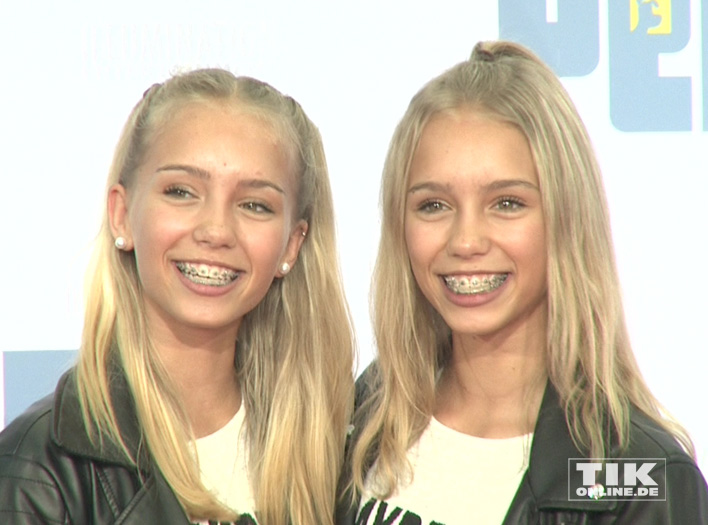Die YouTube-Stars Lena und Lisa strahlen bei der „Pets (3D)“-Premiere in Berlin