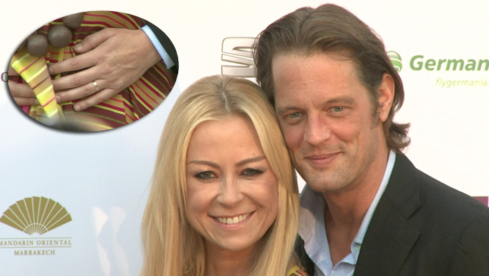 Total verschmust posierte Jenny Elvers mit ihrem Freund. Der trug an der linken Hand einen Ring. Im Interview sprach Jenny von ihrem „Mann“. Als wir nachfragen, ob sie bereits geheiratet hätte sagt sie: „Fragen Sie doch mal ihn!“ Das taten wir dann auch. Steffen klärte auf: „Na ich hab einen Verlobungsring am Finger, aber das ist ja schon bekannt, dass wir verlobt sind. Das ist mein Verlobungsring, der ist mir auch sehr wichtig.“