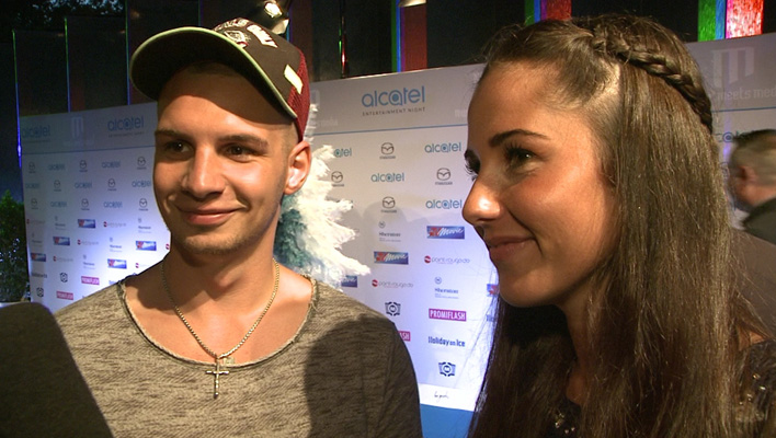 Eng umschlungen posierten die werdenden Eltern Sarah Engels und Pietro Lombardi bei der Premiere der Holiday On Ice Show „Platinum“