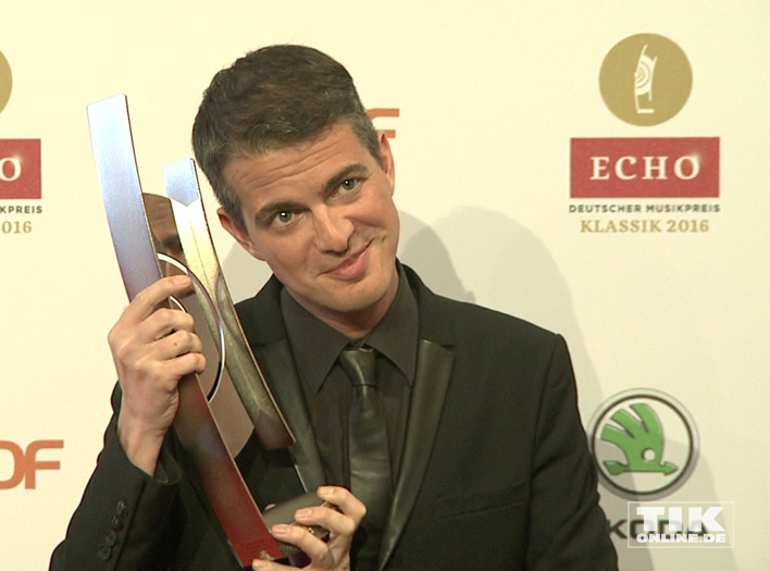 Philipp Jaroussky posiert mit seinem ECHO Klassik 2016