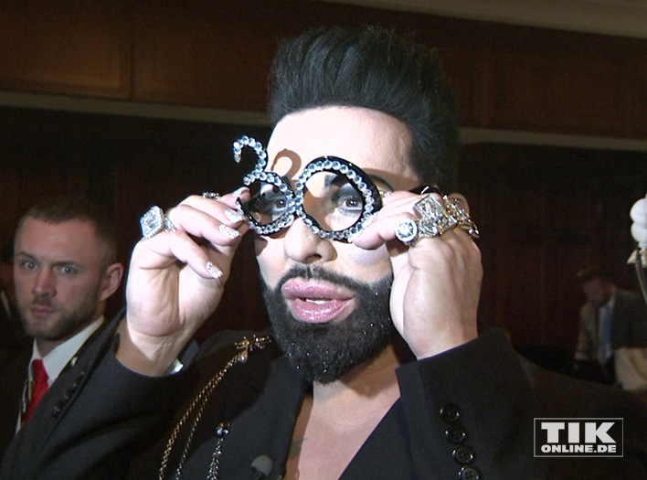 Harald Glööckler, wie immer mit ordentlich Bling-Bling an den Fingern