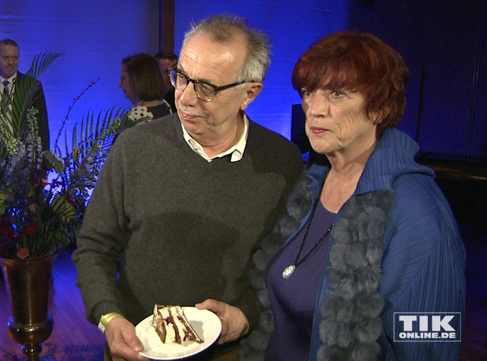 Dieter Kosslick posiert mit Regina Ziegler und einem Stück Geburtstagstorte