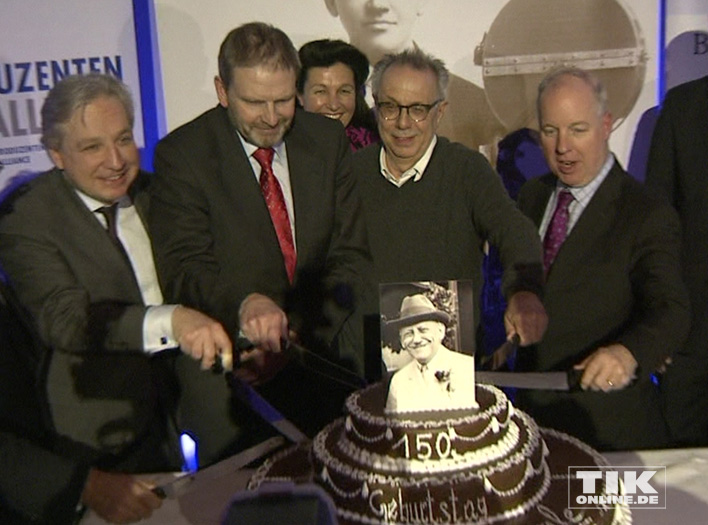 Dieter Kosslick schneidet mit Vertreten des Landes Baden-Württemberg und US-Interemsbotschafter Kent Logsdon die Torte an