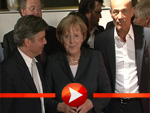 Die Kanzlerin strahlte optimistisch in die Kameras und war nur etwas irritiert, als plötzlich auch Jenny Elvers-Elbertzhagen etwas verspätet in das Fotomotiv hineinstürmte.