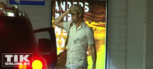 Wir sahen Brad beim Umsteigen in seinem Van. Schnell huschte er mit Schiebermütze und Sonnenbrille hinein.Am Hotel Adlon ging es direkt in die öffentliche Parkgarage. Hier schlenderte Brad gemütlich aus seinem Auto. Mit Tasche über der Schulter und Handy in der Hand ging Brad Pitt hinein. Von Angelina Jolie keine Spur …