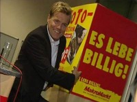 Am Ende überreichten die Chefs dem Dieter noch T-Shirts und Mitarbeiterausweise. Während die echten MakroMarkt-Mitarbeiter auf das Urlaubs- und Weihnachtsgeld verzichten müssen, hat Bohlen sicher ein nettes Sümmchen für den Werbedeal kassiert…