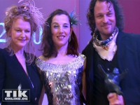 Zum Schluss wurde es Oscar-verdächtig. Denn der Publikumspreis für die beste Jungschauspielerin wurde von den Lesern der B.Z. vergeben und bis zuletzt geheim gehalten. Die Gewinnerin, die sich gegen Katharina Schüttler und Anna-Maria Mühe behauptete, erfuhr erst im Saal von ihrem Glück. Nora Tschirner bekam nicht nur die Bronzetrophäe sondern auch ein Ständchen von Max Herre.