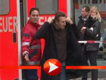 Dramatische Szenen am U-Bahnhof Friedrichstraße in Berlin: Flammen, dichter Qualm, blutüberströmte Menschen, Polizei und Feuerwehr. Nur die Kameras verraten, dass es sich um ein Filmset handelt.