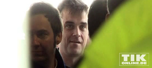 Robbie war sichtlich gut gelaunt, obwohl er und seine Band an der Passkontrolle am Flughafen anstehen mussten, bevor sich der Popstar in einem schwarzen Bus mit verdunkelten Scheiben Richtung Echo kutschieren ließ.