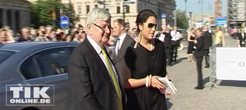 Joschka Fischer kam mit seiner hübschen jungen Ehefrau Minu Barati-Fischer, die ein langes wallendes Kleid trug.