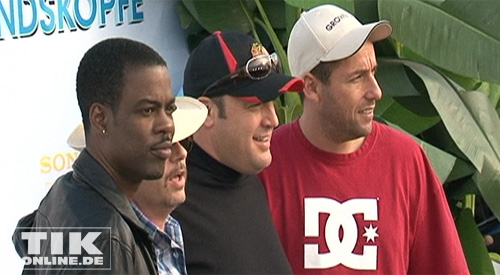 Gewohnt lässig das Outfit von Hauptdarsteller und Drehbuchautor Adam Sandler: Basecap, rotes T-Shirt, grüne Shorts und Hausschuhe! Auf seine noblen Pantoffeln angesprochen scherzte der Hollywoodstar mit dem TIKonline.de-Reporter: