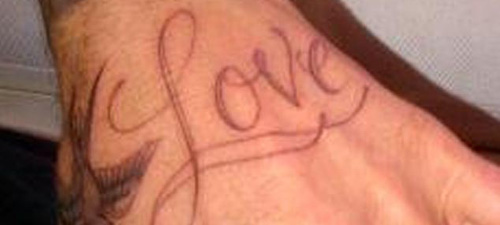 „Love“ ist die neueste Errungenschaft des 36-Jährigen, dessen Körper bereits von verschiedenen Kunstwerken geziert wird. Beckham hat über 20 weitere Tattoos, darunter auch den Namen seiner Tochter auf seinem Schlüsselbein und ein Bild von Jesus, der von drei Engelchen getragen wird.