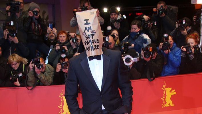 Der 27-Jährige hatte bereits am Sonntag für Schlagzeilen gesorgt, als er im Rahmen der Berlinale aus seiner eigenen Pressekonferenz zum Film „Nymphomaniac“ stürmte und später mit einer braunen Papiertüte auf dem Kopf zur Premiere erschien, auf der stand: „Ich bin nicht mehr berühmt“.