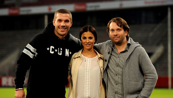 Seinen Gastauftritt hat der Fußballstar dann auch noch auf bekanntem Terrain: Im Stadion seines geliebten 1. FC Köln. Podolski freut sich: