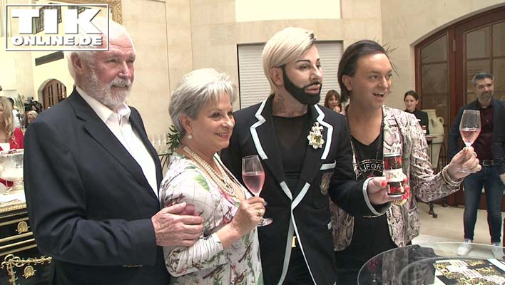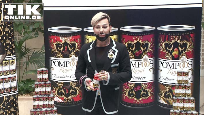 Weltpremiere mit Harald Glööckler im Wintergarten des noblen Hotel Adlon! Der exzentrische Modezar stellte seinen Drink „Pompöös Royal – Ein königlich erfrischender Drink“ erstmals der Öffentlichkeit vor. Das weinhaltige Getränk kommt prickelnd in eleganten, üppig designten Dosen in exotischen Geschmacksrichtungen wie Ingwer-Himbeere, Erdbeer-Mango oder Chocolate-Chili daher.