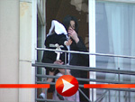 Michael Jackson mit seiner Tochter Paris am Fenster des Hotel Adlon.
