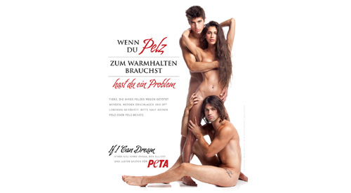 Die aktuelle PETA-Kampagne läuft unter dem Motto „Wenn du Pelz zum Warmhalten brauchst, hast du ein Problem“ und zielt gegen die Pelzindustrie.