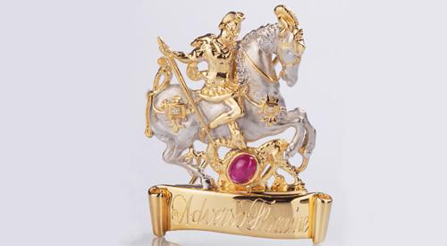 Die Herstellung ist dabei ein äußerst langwieriger und kunstvoller Prozess, da der Orden in Handarbeit gefertigt wird. Das Pferd, der Reiter und der Drache werden von dem Goldschmiedemeister Oliver Engstfeld in Handarbeit aus Wachs modelliert. Anschließend wird das Wachsmuster in Gold gegossen und die Konturen von Hand nachgearbeitet. Einzelne Teile werden dann mit Hilfe einer offenen Flamme zusammengefügt und sorgfältig poliert.