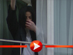 Michael Jackson bei seinem letzten in Berlin-Besuch. Im November 2002 zeigte er sich am Fenster des Adlon Hotels und erfreute sich an seinen Fans.