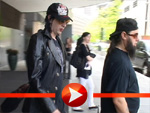 Ganz in schwarz kam Rocker Marilyn Manson aus dem Berliner Hotel Hyatt. Trotzdem hatte er was für seine Fans übring und schrieb schnell ein paar Autogramme.