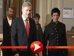 Klaus Wowereit führt Shah Rukh Khan ins Rote Rathaus, damit sich der Bollywood-Star in das Goldene Buch der Stadt eintragen kann.