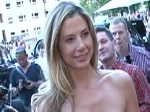 Mira Sorvino wird von Fotografen und Autogrammjägern auf der Fashion Week in Berlin regelrecht bestürmt.