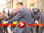 Das spanische Kronprinzenpaar Felipe und Letizia gaben sich bei ihrem Besuch in Berlin volksnah und schreiben Autogramme.